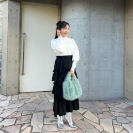 シルバーは主張が控えめで上品な雰囲気のある色。だからこそ、スタイリングをきれいめに寄せたいときにはまさにピッタリ。スナップのような女性らしさのあるカジュアルコーデとの相性は抜群です!