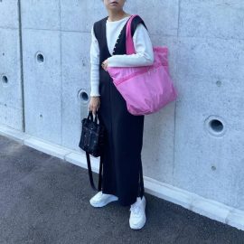 トップスとパンツがシンプルなので、シューズに差し色や柄を持ってくると、スタイリングに幅が出ておすすめです♪