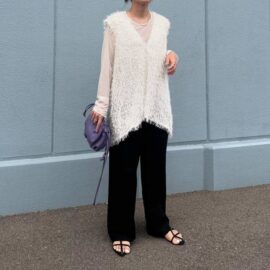 個性的に決めたいときは、こちらのスナップのようなファーのべストもおすすめです。