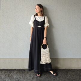 シンプルアイテムの組み合わせには、美人アピールのワンテクを♪