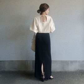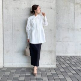 夫の親戚回りの時、気をつけたいのが「露出」。短すぎるスカートや襟が大きく開いたトップス、ノースリーブなどはなるべく控え、清潔感のある好印象な着こなしがベストです。こちらのスナップは、白ブラウスに派手さがない花柄スカートの組み合わせ。スカート丈は、短くても膝丈くらいにおさえておきましょう。年配の方や年上の方に好まれやすい白系の着こなしもポイントが高いです♡