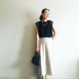 夫の親戚回りにぴったり♪ きちんとモノトーンにほんのりフェミニンな着こなし♪