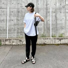 トップスボトムスともにホワイトでまとめたスッキリシンプルコーデですが、ブラックのキャップがピリリと辛みを効かせて周りの人とは差を付けられる上級者コーデです。小物一つでこんなにも変わるんですよ♪ 足元も少しハードな柄のスリッポンを合わせることによって寂しい印象になりがちなワントーンコーデのアクセントになってくれます。