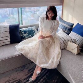 質の良い料理をさらりと楽しめるような「小洒落たフレンチカジュアルレストラン」に年上男性と行くなら、華やかなお色のワンピースはいかがでしょうか♪