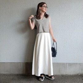 この夏はデニムだけに頼らず、スカートで大人なシンプルコーデを楽しんでみましょう♪