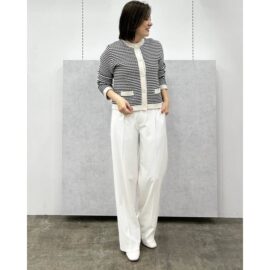 タイトなトップスにワイドパンツはシルエットが美しくなります。パールのアクセサリーにメタリックなバッグ、白いパンプスで上品な大人レディになります。