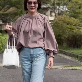 人気のオーバーサイズタートルニットとデニムのワイドパンツをコーデしたレトロな雰囲気の大人カジュアルスタイル。アイテムはシンプルですがゆるサイズ感が旬な着こなしですね。タートルニットはユニクロ、デニムパンツはcocaのアイテムです。毛皮をトリミングしたバッグがゆるふわ感をアップグレードしています。