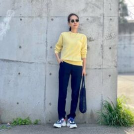 こちらは、ディーホリックのケーブルニット・デニムロングスカートを使った着こなし。ベーシックなアイテムでも、サイズ感やシルエットにトレンド感が加わるので、コーディネートが垢抜けます♪