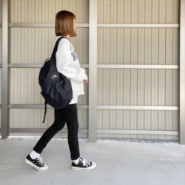 大きくて軽くて使いやすい♥ ナイロンの黒リュックで、スポーツMIXなコーデ