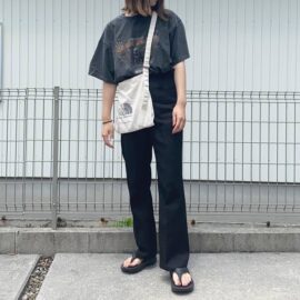 シンプルシックなデニムスタイル。きれいめにまとめることで、ウォッシュ加工されたカジュアルなデニムも、品のある着こなしになります。