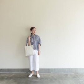 ホワイトのアンクル丈パンツは、オフィスコーデにおすすめです。きれいめで上品なので、万人ウケするコーデに。アンクル丈が足首の細さを強調してくれ、細見え効果も出ます。