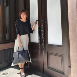 ブラックシャツ×スカートで作る大人フェミニンコーデ