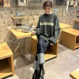 シンプルトップス×極太ロールアップジーンズで好バランスに