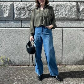 デニムワイドパンツでシンプルコーデもおしゃれに!