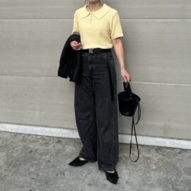 シンプルカジュアルにサンフラワーイエローの差し色をプラス