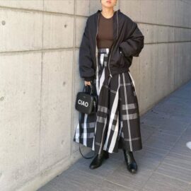 そんなMA-1は人気がゆえに、着て出かけた日は若い子と被ることも珍しくありません。若い子と同じアイテムを着て、同じ着こなしならちょっと恥ずかしいですよね。カジュアルアウターのMA-1は、きれいめなアイテムや女性らしい生地、ラインのものと合わせるのが大人の着こなし。