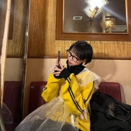 オールブラックでMA-1を着こなしたこちらのスナップ。同色コーデは生地の質感を変えて、のっぺり感を出さないのが鉄則です。ドレープ感のあるワイドパンツとリブTシャツでメリハリをつけ、MA-1でカジュアルダウン。ポイントになる小物でのアクセントには、ベージュのサッシュベルトとファー付きバッグでコーディネートに奥行きを持たせています。ヘアスタイルはすっきりまとめるとスマートな装いに。