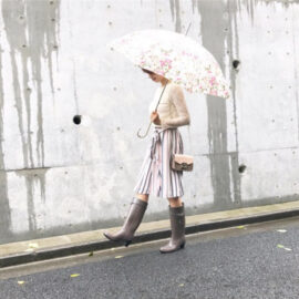 普段フェミニンで優しい色の洋服が多い方は淡い色のレインブーツが重宝します。