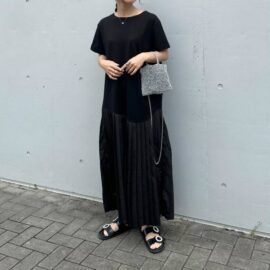 夏っぽさを感じさせてくれるフラワープリントのコンビネゾンには、旬な小物をプラスしてフォークロアなムードに。ブラックのリボンが全体を引き締めてくれるカンカン帽には、配色を合わせたラウンドジュートバッグが相性◎。シルバーのフラットサンダルも洗練度を高めるポイントになってくれます。