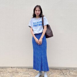 軽い素材感のロング丈スカートに、スニーカーやカジュアルなサンダルを合わせて足元をスポーティに仕上げましょう♥