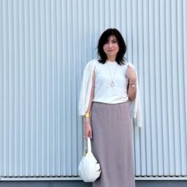 半袖やノースリーブのインナーとカーディガンのアンサンブルは、カットソー素材でもきれい見えするアイテム。