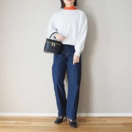 サーモンピンクスウェットで脱・地味コーデ
