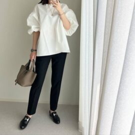 Tシャツの完全インでワイドパンツとのコーデをバランスよく