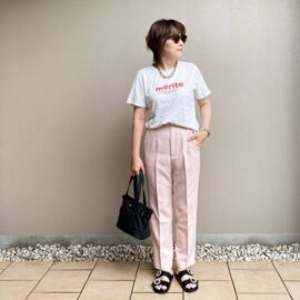 夏の日差しに負けない赤いロングTシャツは、カジュアルな黒いサンダルを合わせてシンプルに。お目立ちカラーだからこそ、健康的に着こなしたいですね♥