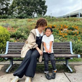 そこで活躍するのが、ぺたんこヒールのパンプスです! メンズライクなカーキのベイカーパンツも、パンプスを合わせるだけでスタイリッシュな雰囲気が漂い、きれいめ感のあるママコーデにシフトできますよ。歩きやすさもお墨付きなので、親子競技に参加する場合も安心ですね♪
