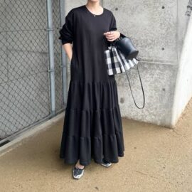 ブラックカラーで大人っぽい! カジュアルな黒ワンピース