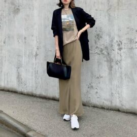 ファッショニスタのスナップでも高い頻度で見かけるコーデなので、流行に敏感なミーハー派の方は試してみて。