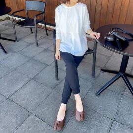 チェーンストラップがきらめくバッグをななめ掛けにしてリッチなムードをプラスすれば、ホテルのスイーツビュッフェにも最適なきれいめコーデが叶います。