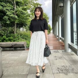 ヒール無し靴でもキレイに仕上がるタイトスカート