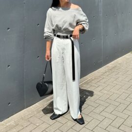 こちらのスナップは、ゆるっとシンプルな大人コーデが人気の#CBKモデル・あっこさんのスタイリング。ネックラインが広めに開いたトップスに合わせた柄スカーフがとってもおしゃれなコーディネートです♪