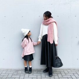 トレンド感を取り入れるなら、ケーブル柄ニットのマキシスカートがおすすめ。女性らしいフレアシルエットのニットスカートにボリューム感たっぷりなニットトップスを合わせば、ゆるっとこなれた着こなしが楽しめます♪