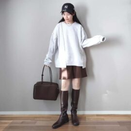 普通のブーツに比べて足元がすっきり仕上がるから、スカートコーデと相性バツグン! タイツはもちろん、ソックスに合わせてカジュアルに仕上げるのもおすすめです。