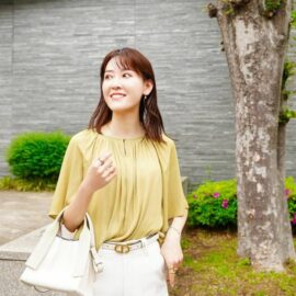 ボウタイブラウスで気品漂うクラシカルな印象に
