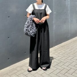 かっちりとしたセンタープレスのパンツにあえてオーバーサイズのニットを合わせれば、今っぽいゆるコーデに。全体を淡いトーンでまとめることで、優しい雰囲気にまとまります♪