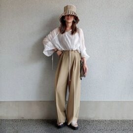 シャレ感バツグン! きれいめブラウス×バケットハットの韓国風コーデが今っぽい