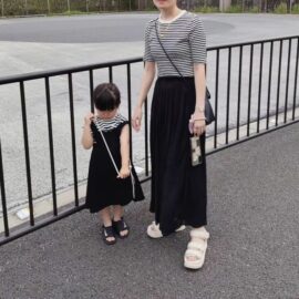 二つ目のコーデアイデアは、ブラックボーダーを使った大人コーデ。シンプルですが、ブラックベースのボーダー柄が今っぽいエッセンスになってくれます。