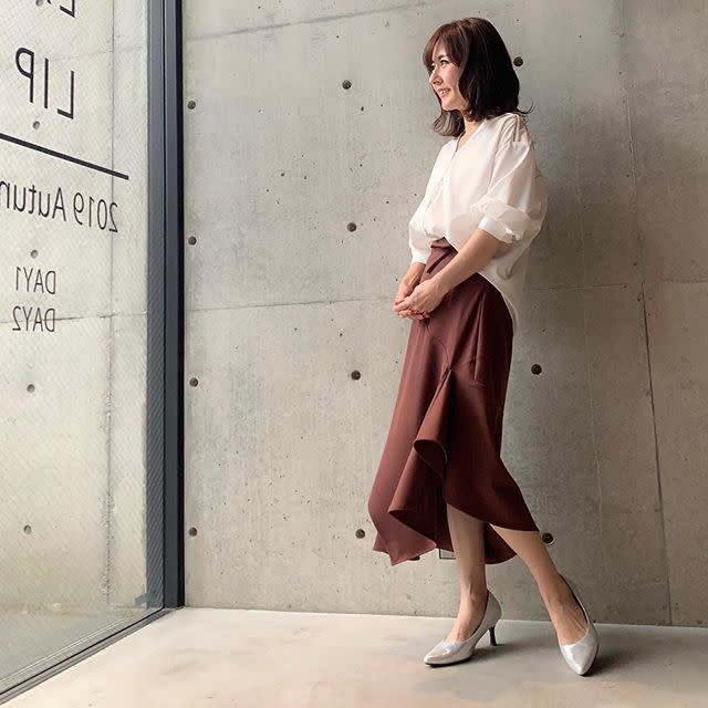 ウエストまわりを強調しすぎない、きれいめデザインを選ぶのがコツ。体型カバーしつつ上品なスタイリングに仕上げてくれますよ。