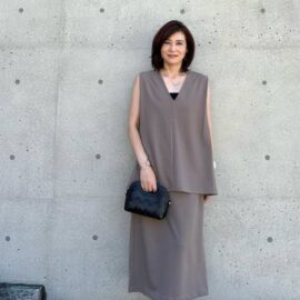 50代女性には、シンプルでありながらどこか洗練ムードを感じさせるデザインがよく似合います。#CBKモデルのスナップを参考に、カゴバッグの選び方&合わせ方をチェックしてみましょう。
