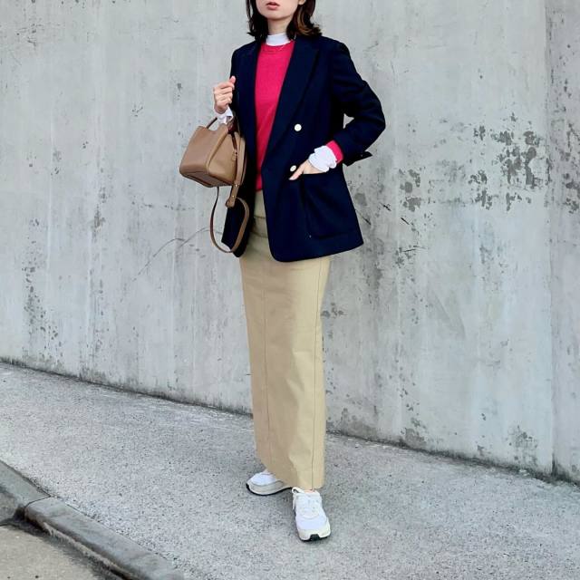 ここからは、ネイビー×ベージュ配色を使ったおしゃれさんのお手本コーデを一挙ご紹介。お好みのスタイリングを探してみてくださいね。