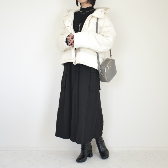 ダウンジャケットやダウンコートのとき、合わせるバッグに迷ってしまう方が多いみたい。ボリュームのあるダウンは、バッグとのバランスがちょっと難しいですよね。