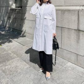 「オーバーサイズのトップス」と合わせれば、お腹まわりをカバーしつつ今どきのルックスに決まりますよ♪