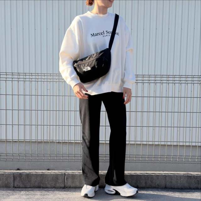 気楽にできるだけ頻繁にジムへ通いたい方は、ゆったりシルエットのロゴスウェットがあると便利。インナーにはジム用トップス、ボトムにジムウェアを合わせれば、更衣室での着替えや帰ってからのお洗濯も少なく済みますよ。