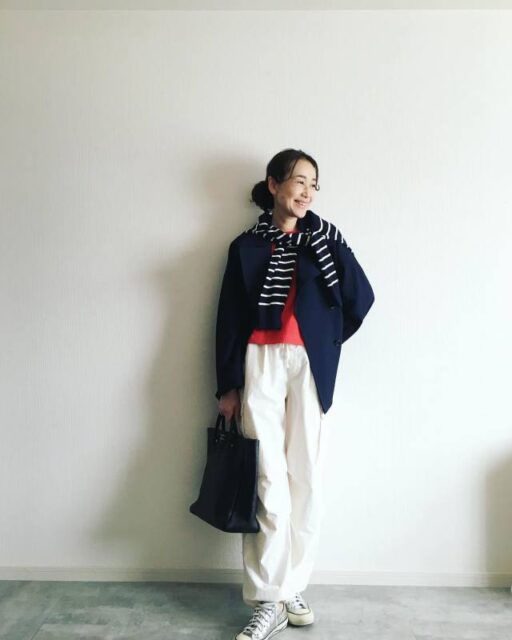 もし「何を選べばいいの?」と悩んだら、センタープレスが入ったゆったりめパンツなら失敗がありません。美脚見えしつつスタイリングにきちんと感を醸し出します。