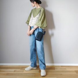 スナップでは「リネンライクのブルゾン」を使ってコーデ。クリーンな生地感が効くため、カジュアルになりがちなブルゾンをきれいめに着こなせます。