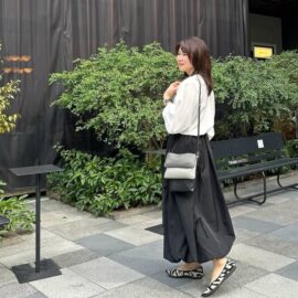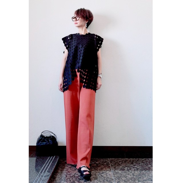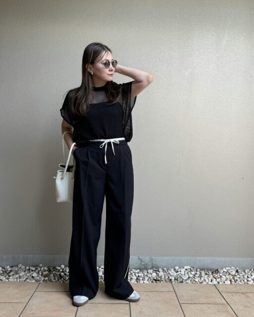 またスタイリングもひと工夫を。レギンスなどぴったりとしたパンツを合わせるコーデはやや時代遅れのイメージがあるので、避けた方が無難かも。今季のおすすめは、ゆったりしたパンツやボリュームスカートとのコンビ。夏はサンダルを効かせると足元が軽やかに決まりますよ。