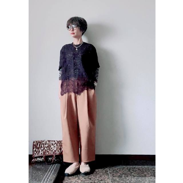 黒ブラウスは取り入れやすい一枚ですが、気温が高い時期は暑そうに見えるのが気になるものです。そこでおすすめなのが「レース素材の黒ブラウス」。風通しがいい上に、透け感のある生地で取り入れることで黒ブラウスがスッキリ見え。しかもレースのトップスはコーデが華やぐとあり、50代にぴったりです。